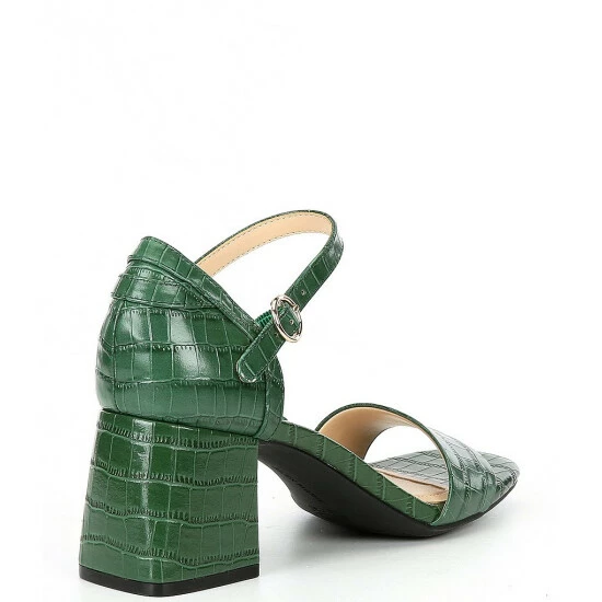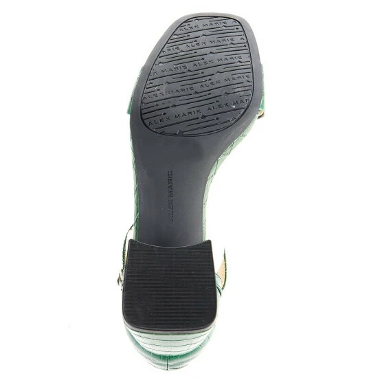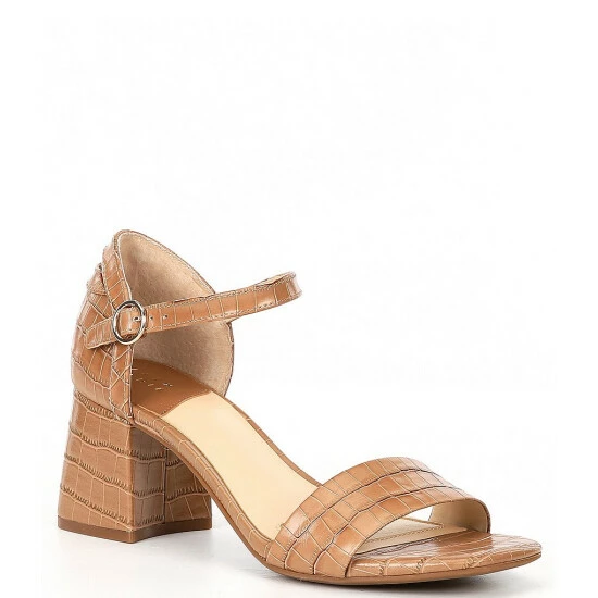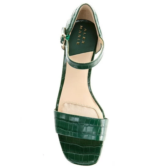 From Alex Marie, the Aidrea Croco Print Ankle Strap Block Heel Sandals feature: