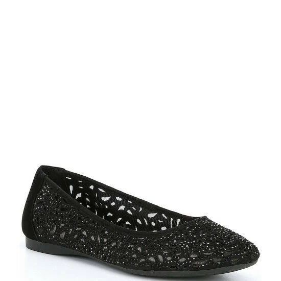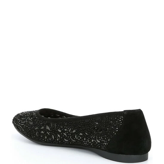 Top 10 ???? Alex Marie Altana Suede Laser-Cut Rhinestone Flats Black ⭐