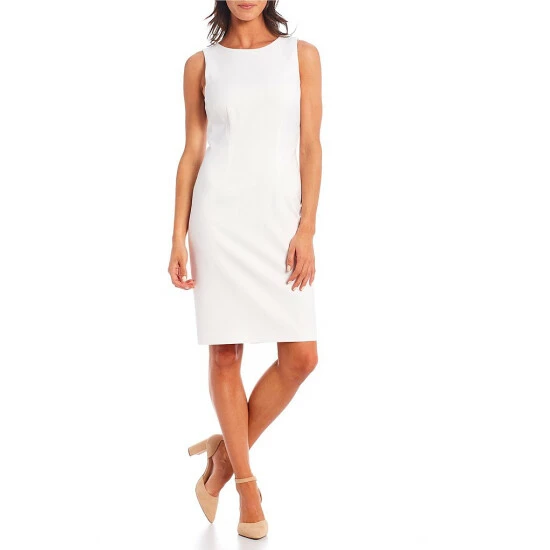 Top 10 ???? Alex Marie Carrie Anywhere, Everywhere Sleeveless Round Neck Back Slit Pencil ???? Dress True White ????