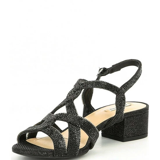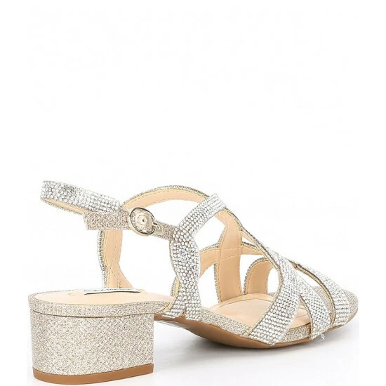 From Alex Marie, the Crennan Rhinestone Dress Sandals feature: