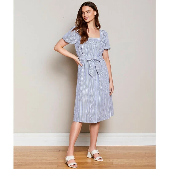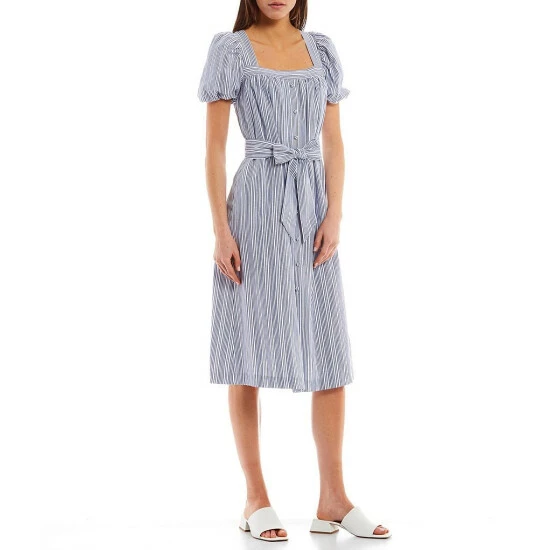 - Hook and invisible zipper on back of the dress; button front and tie sash closure