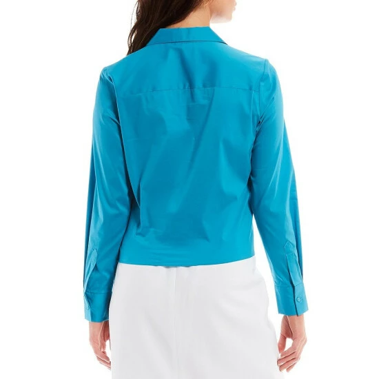 - 5 buttons down front of blouse closure with tie