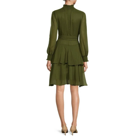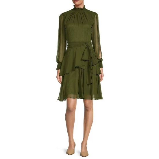 Budget ???? Alex Marie Petite Size Rosalia Long Split Sleeve V-Neck ???? Dress Olive ????