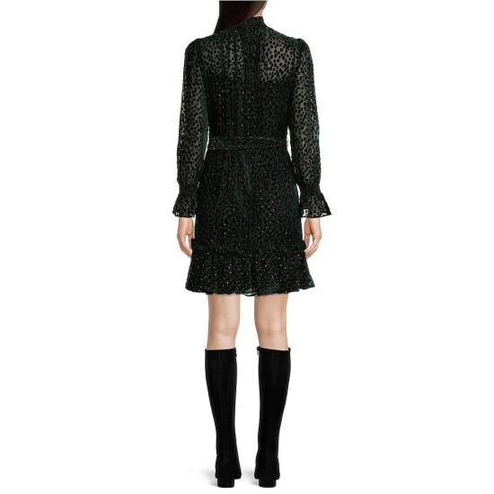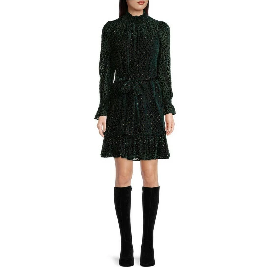 Best Pirce ???? Alex Marie Petite Size Skyler Metallic Velvet Burnout Long Sleeve Mock Neck ???? Dress Teal/gold ✔️