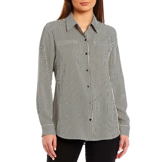 Cheapest ???? Alex Marie Piper Crepe De Chine Stripe Point Collar Long Sleeve Button Front Blouse ????