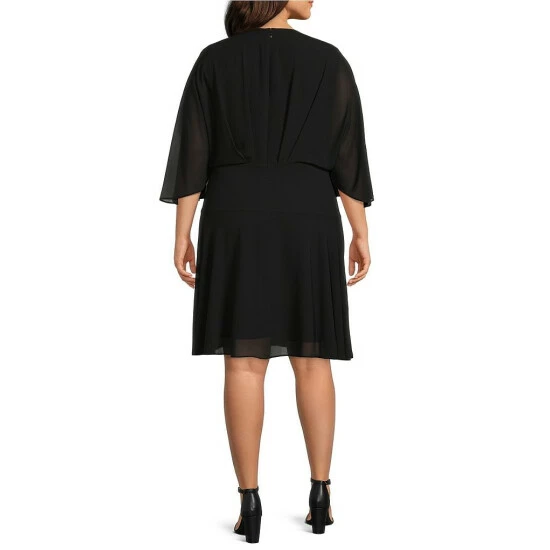 Cheapest ✔️ Alex Marie Plus Size Carissa Chiffon Surplice V-Neck 3/4 Sleeve Belted ???? Dress Black ✔️