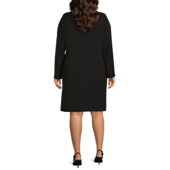 Budget ❤️ Alex Marie Plus Size Jolie Surplice V-Neck Long Sleeve Stretch Crepe Gathered Ring Waist Faux Wrap ???? Dress Black ⌛