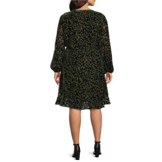 Wholesale ✨ Alex Marie Plus Size Maren Animal Print Velvet Burnout Surplice V-Neck Long Sleeve Wrap ???? Dress Moss ????