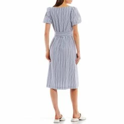 Coupon ⌛ Alex Marie Logan Stripe Square Neck Short Sleeve Tie Waist Midi ???? Dress Blue/white ⌛