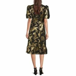 Discount ???? Alex Marie Renoir V-Neck Long Sleeve Tiered Ruffle Hem Midi ???? Dress Black/gold ????