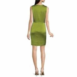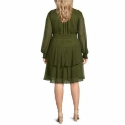 Cheap ???? Alex Marie Plus Size Rosalia Long Split Sleeve Mock Neck Tie Waist ???? Dress Olive ✨