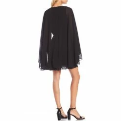 Outlet ???? Alex Marie Jordan Long Cape Round Neck Sleeveless Chiffon ???? Dress Black ????