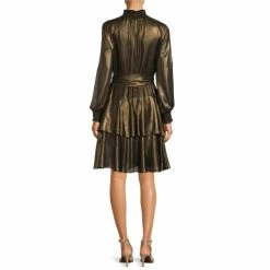 Wholesale ???? Alex Marie Petite Size Rosalia Foiled Chiffon Mock Neck ???? Dress Black/gold ????